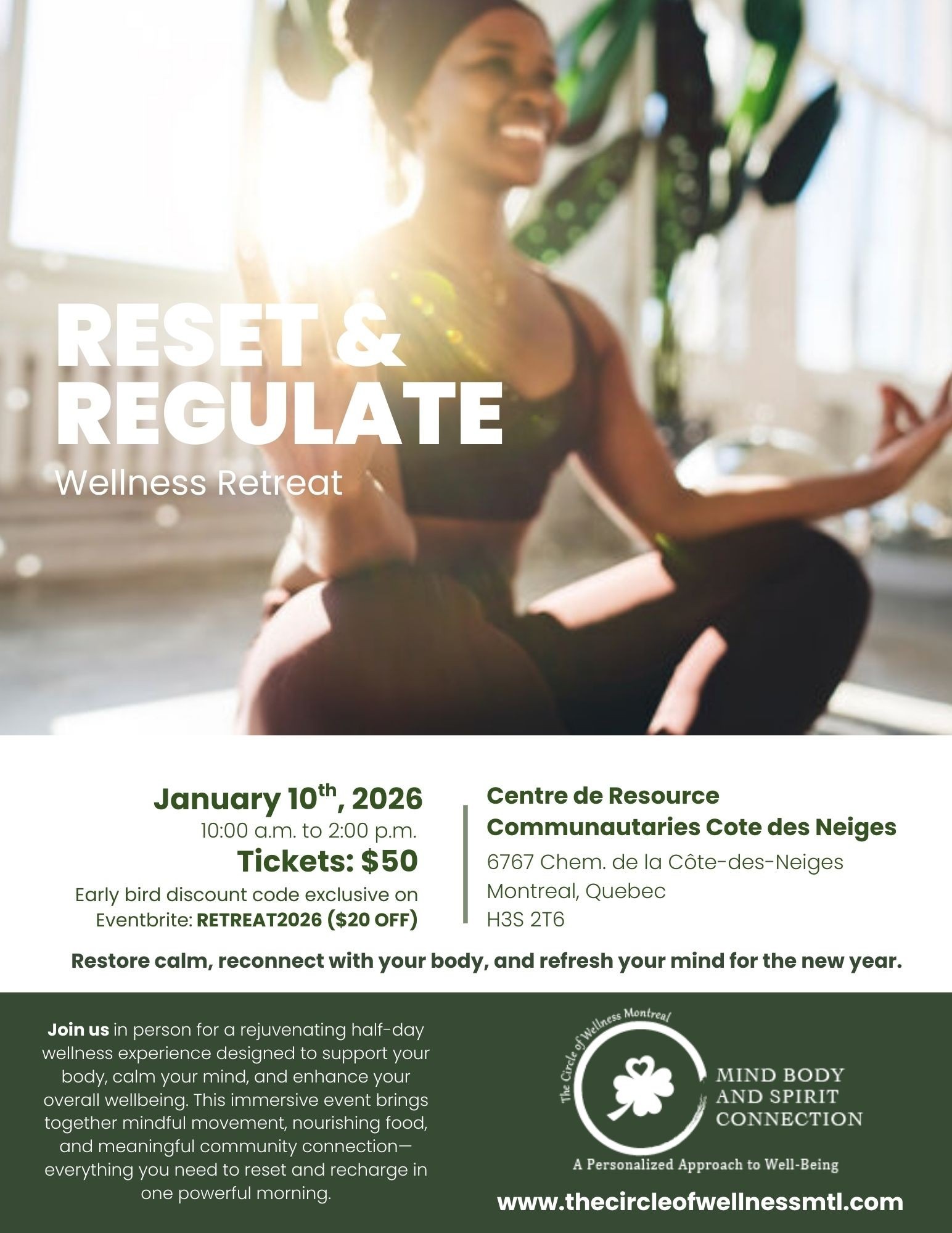 Join us in person for a rejuvenating half-day wellness experience designed to support your body, calm your mind, and enhance your overall wellbeing. This immersive event brings together mindful movement, nourishing food, and meaningful community connection—everything you need to reset and recharge in one powerful morning.